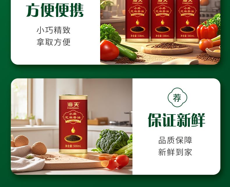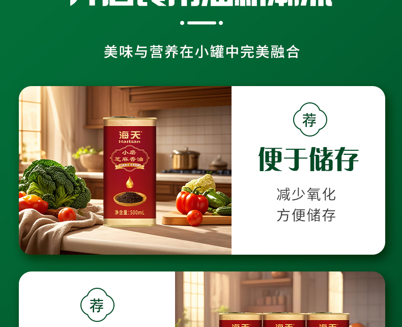 海天食用油非转基因芝麻油3件套(铁罐)HT-Z302T