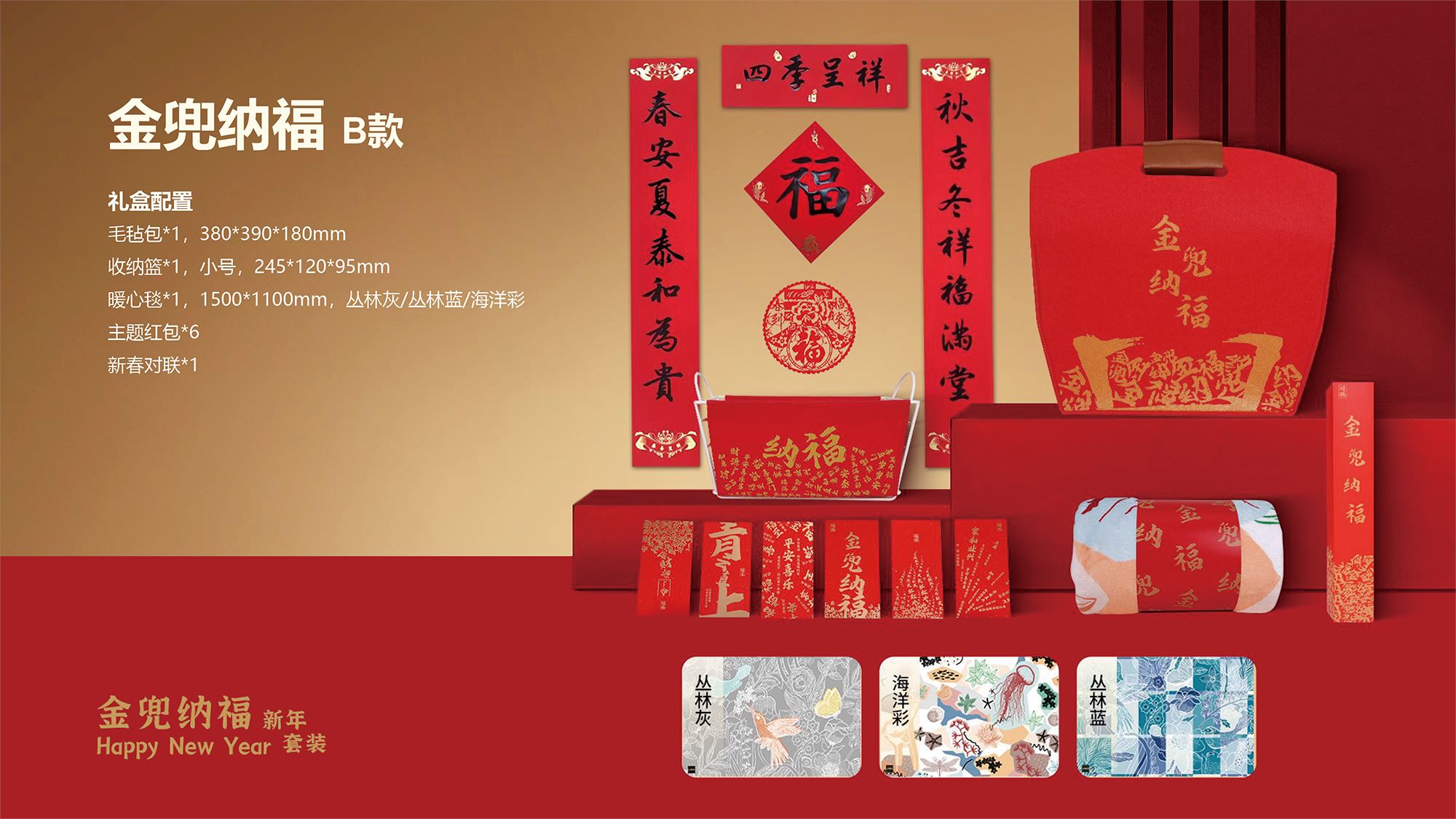 毛毡包*1,380*390*180mm收纳篮*1,小号,245*120*95mm 主颖红包*6新春对联*1 暖心毯*1,1500*1100mm,从林灰/从林蓝/海洋彩
