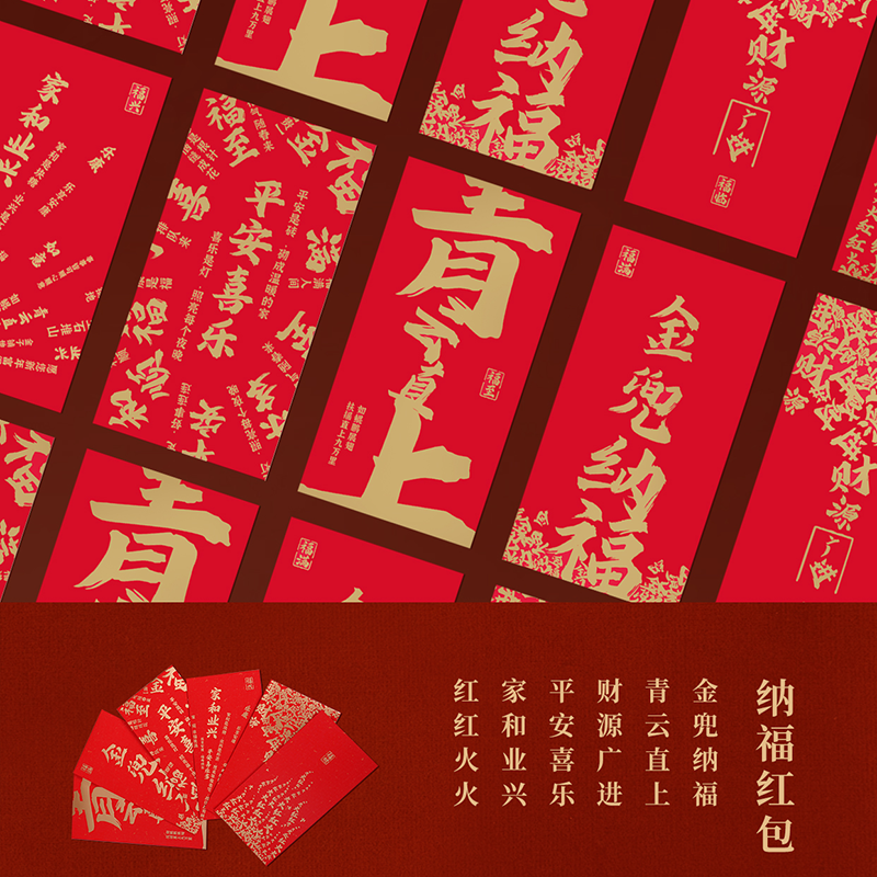 贪吃猫文创新年金线福字红包礼盒便携节日礼品装